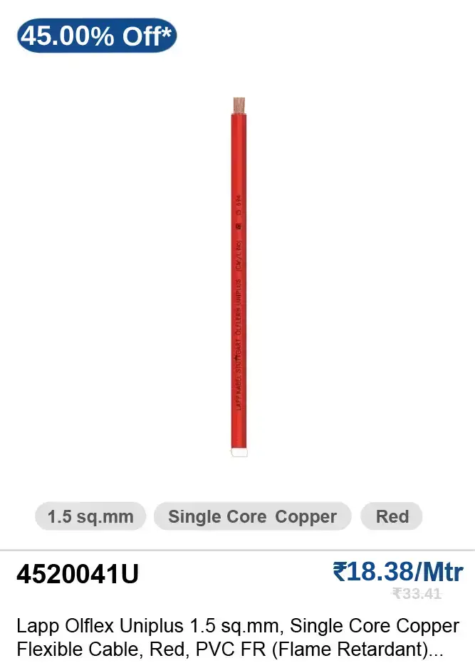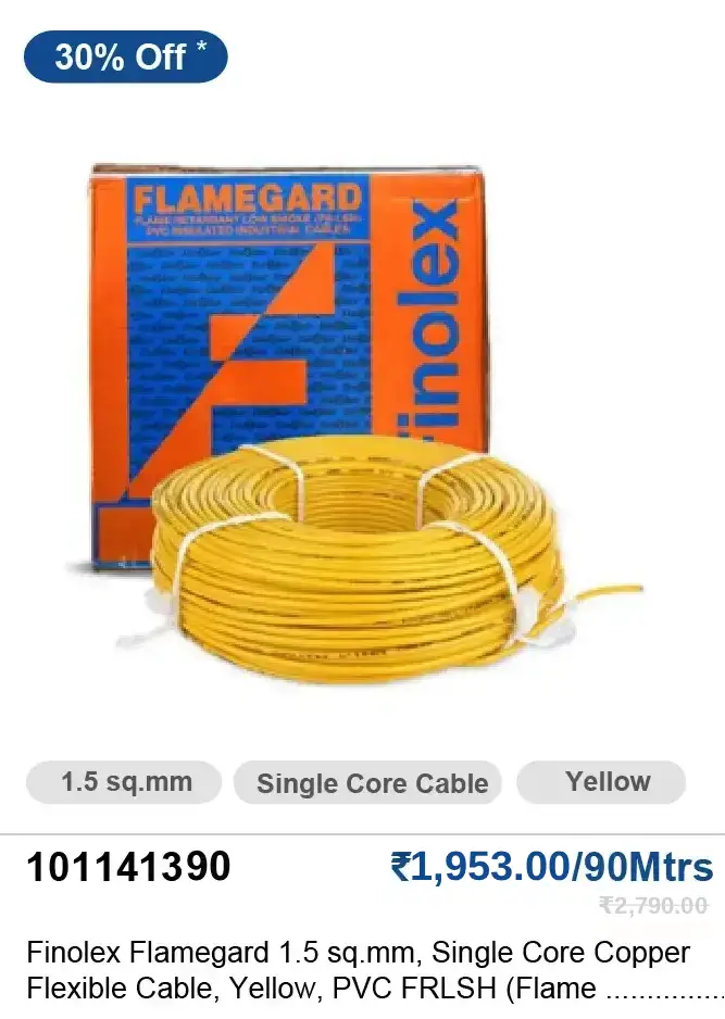 At Eleczo, we connect you with genuine, high-performance electrical wires from industry leaders like Finolex, Lapp Kabel and Polycab. Every 1.5 sq mm wire in our catalog is rigorously vetted to meet strict industry standards for superior conductivity, insulation integrity, and overall performance.