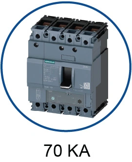 Siemens Sinova 3VJ1 MCCB 100 A, 4 Pole, 36 kA, Adjustable Overload & Fixed Short Circuit Settings, Thermal Magnetic Trip Unit (ATFM) 3VJ1110-5EB42-0AA0