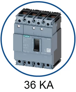 Siemens Sentron 3VM1 MCCB 100 A, 4 Pole, 36 kA, Fixed Overload & Fixed Short Circuit Settings, Thermal Magnetic Trip Unit (FTFM) 3VM11104GD420AA0