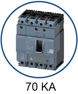 Siemens Sentron 3VM1 MCCB 100 A, 4 Pole, 55 kA, Fixed Overload & Fixed Short Circuit Settings, Thermal Magnetic Trip Unit (FTFM) 3VM11105GD420AA0