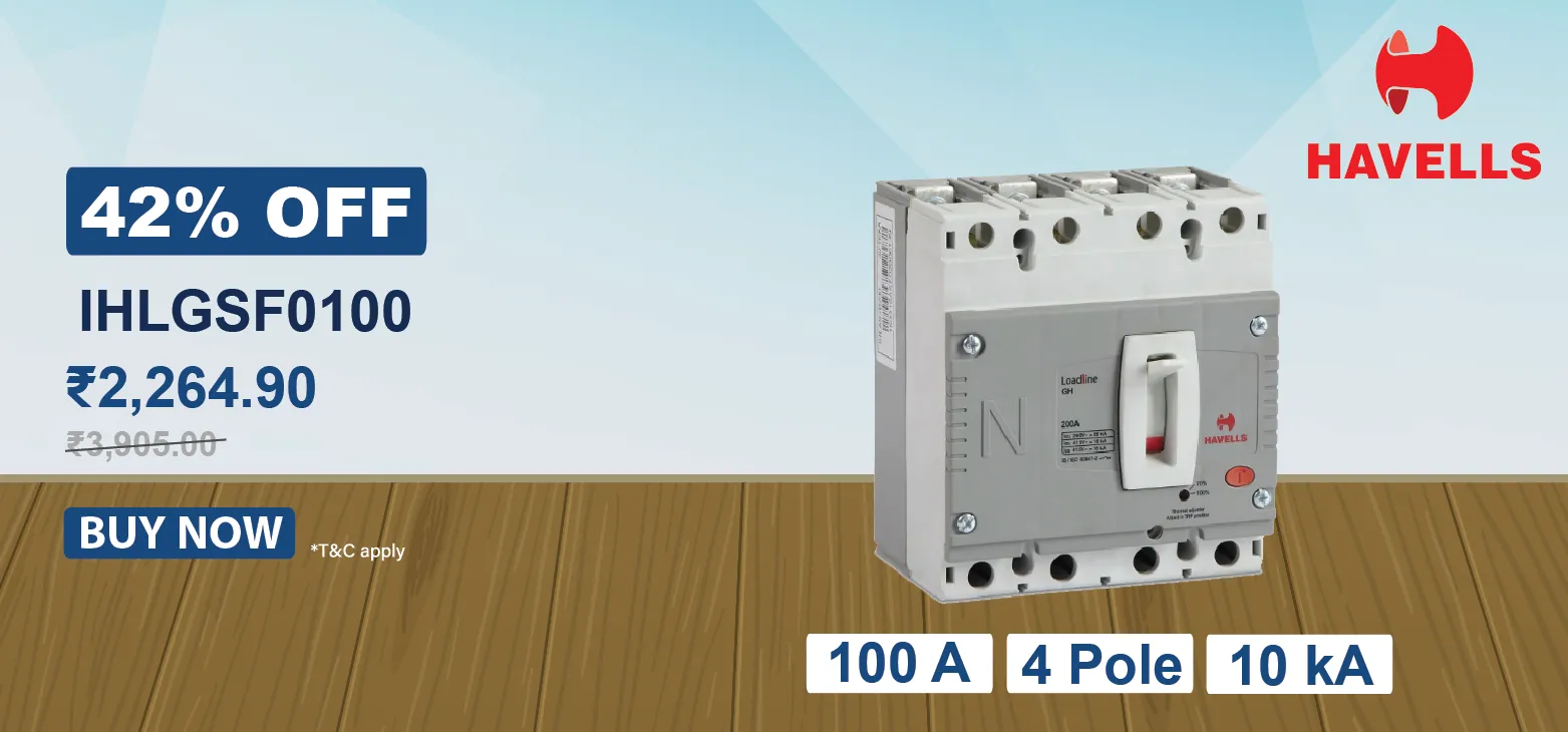 | Havells Loadline 100 Amp 4 Pole 10 kA FTFM MCCB IHLGSF0100 | 42% | Rs.2,264.90 |