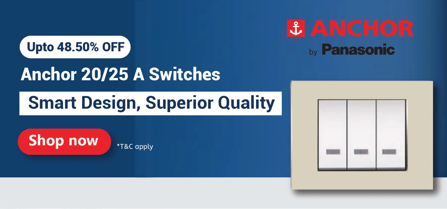 Eleczo is one of the outstanding platforms to obtain Anchor 20/25 Ampere Switches at the most prevailing price in the market. The Anchor by Panasonic brand offers a wide range of modular and non-modular switches with 20 and 25 Ampere based capacity. Explore our vast inventory of Anchor electrical switches using predesigned filters including current rating, no of poles, breaking capacity & others. Visit Eleczo now and electrify your world with Anchor 20/25 Amp Switches! You can avail GST benefits for placing bulk orders or business purchases and assured timely deliver.