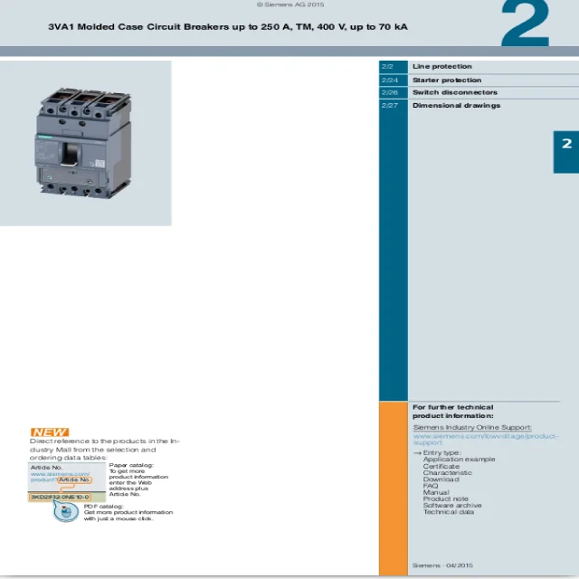 Download instantly, a complete range of Siemens Sentron 3VA Molded Case Circuit Breakers products technical specifications & other details pdf from an authorised Siemens 3VA MCCB dealer & distributors in India. Browse Eleczo.com and download the latest Siemens Sentron 3VA MCCB catalogue pdf and explore a wide assortment of genuine Siemens 3VA MCCB products, key features, technical specifications, & other details.